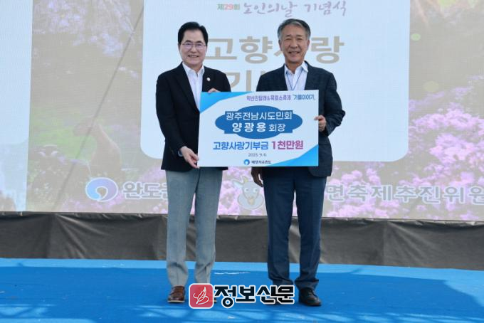 지난 6일 열린 ‘약산 진달래·흑염소 축제’에서는 양광용 광주전남시도민회장이 야구단을 위해 1천만 원을 기부했다.