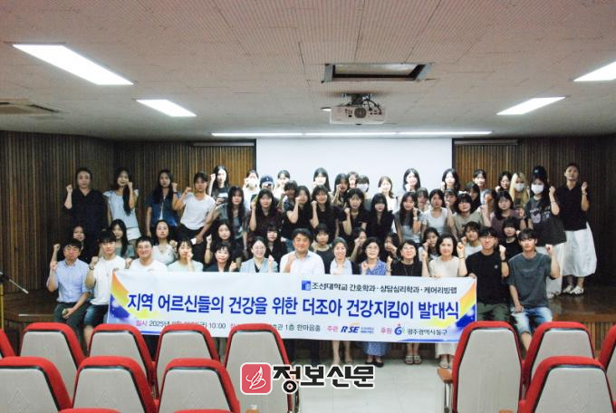 발대식에는 광주 동구 통합돌봄과 김은미 계장, 조선대 김재홍 지역혁신센터장(겸 취업학생처장), 간호학과 김현례 학과장, 강희영, 김진선, 이신영 교수, 상담심리학과 김나래 학과장, 간호학과 봉사동아리 ‘나눔’, ‘윙스’ 소속 학생 40명 등이 함께 했다.