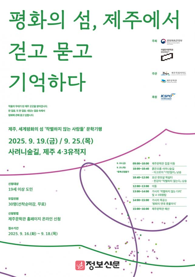 ![]() 제주문학관, 제주, 세계평화의 섬-작별하지 않는 사람들 문학행사 개최 |