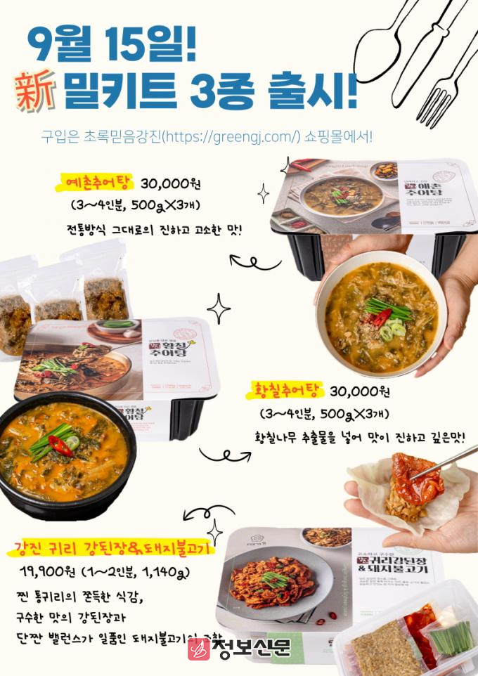 이번에 출시되는 밀키트는 황칠추어탕, 예촌추어탕, 강진 귀리 강된장&돼지불고기로 총 3종이다.