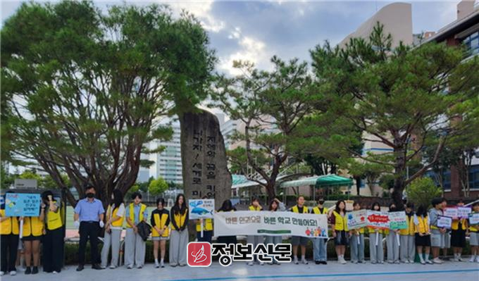 이번 캠페인은 아파트 단지로 둘러싸인 학교 주변의 교통환경 속에서 학생들의 안전한 등굣길을 확보하고, 생명존중의 가치를 실천하는 공동체 중심 교육을 강화하기 위해 마련됐다. 등굣길 횡단보도와 교문 앞에서 진행된 캠페인에는 어울림 서포터즈 학생들을 비롯해 순천시 관계자와 교직원이 함께 참여했다.