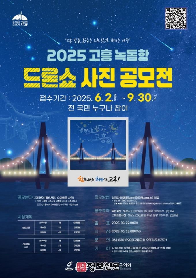 ![]() 고흥군, 녹동항 드론쇼 사진 공모전 개최 |