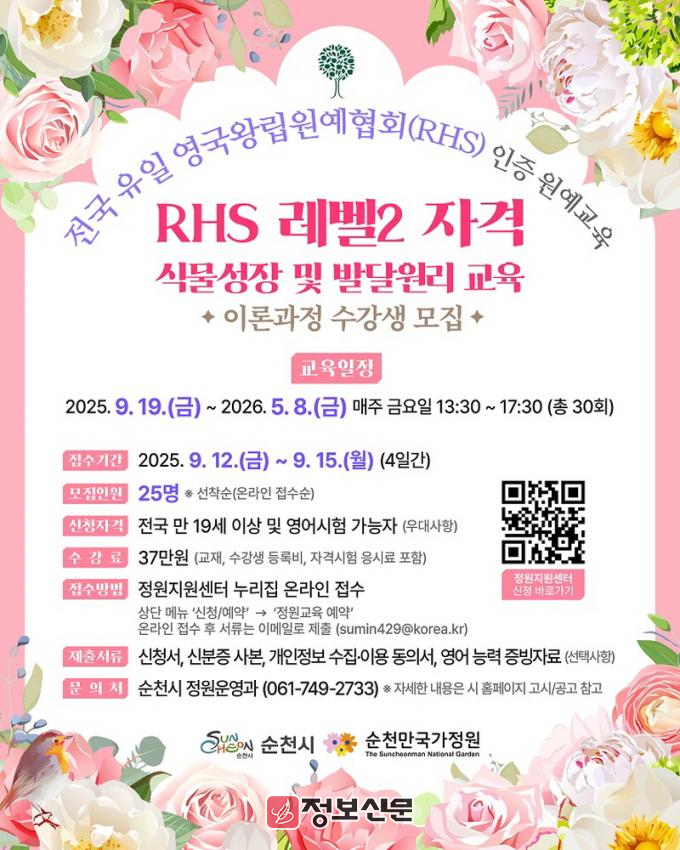 ![]() 순천시, 전국 유일 RHS(영국왕립원예협회) 승인 교육 수강생 모집 |