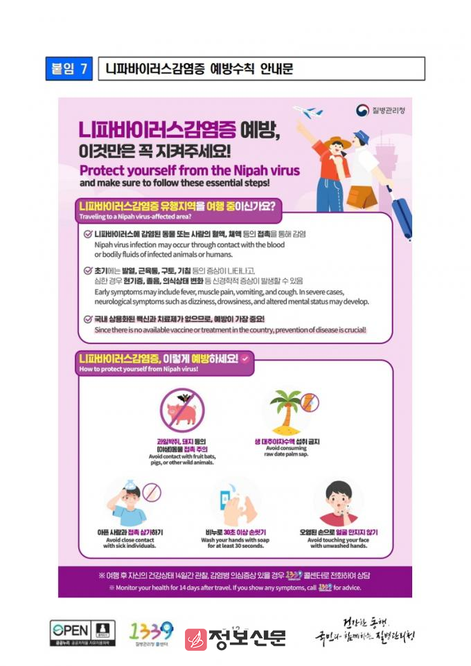 ![]() 화순군, 니파바이러스감염증 제1급 법정감염병(검역감염병) 신규 지정 감시체계 강화 |