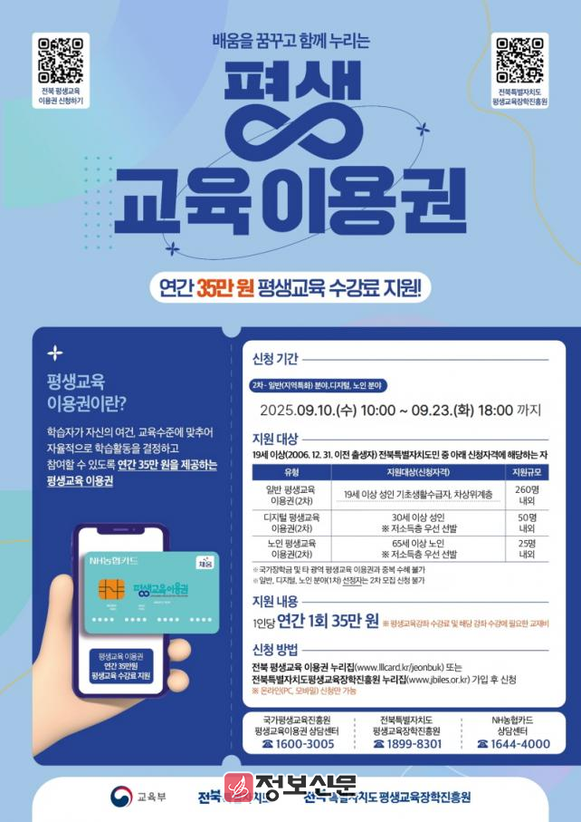 ![]() 전북특별자치도, 평생교육이용권(바우처) 2차 추가 모집 |