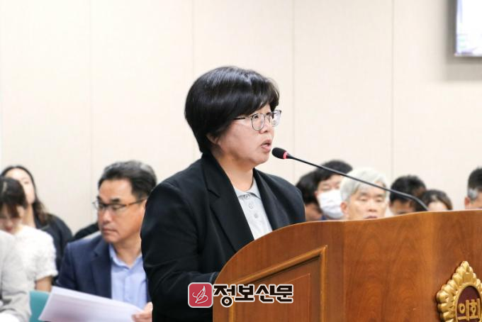 ![]() ▲ 전라남도의회 제393회 임시회 제1차 기획행정위원회 회의(9일)에서 오미화 의원이 건의안 제안을 설명하고 있다.