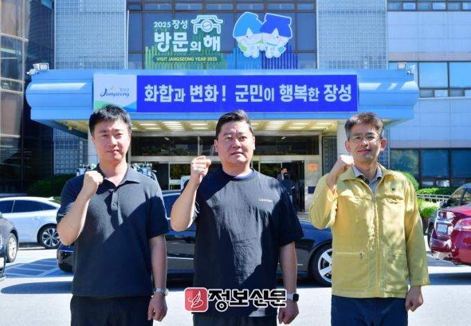 ![]() 장성군청 야외 주차장에서 차량 화재 공무원이 초기 진화(좌측부터 김태국·김태현·박근우 주무관)