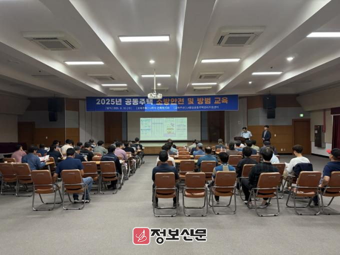 나주시(시장 윤병태)는 지난 10일 나주시민회관에서 공동주택 관리업무 종사자 100여 명이 참석한 가운데 ‘2025년 공동주택 소방 안전 및 방범 교육’을 진행했다고 밝혔다.