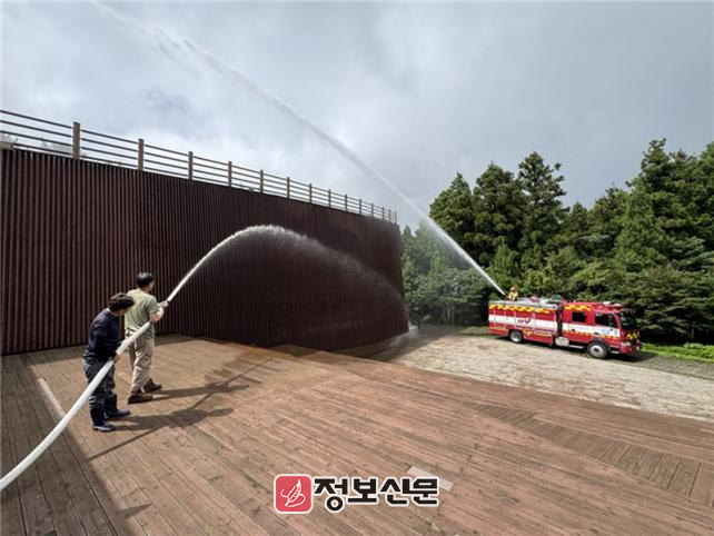 이번 훈련은 휴양림 특성상 화재 발생 시 대형 재난으로 이어질 수 있는 만큼 화재 위험을 예방하고 신속한 초기 대응 능력을 높이기 위해 마련됐다.