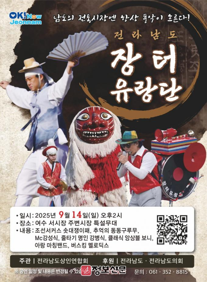 ![]() 전라남도 장터유랑단, 여수 서시장 주변시장 특설무대서 14일 공연 |