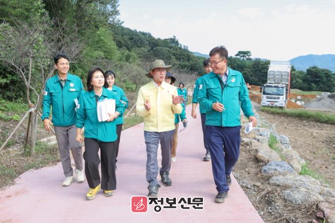 첫 일정으로 방문한 도선 천년동백정원 조성사업 현장(옥룡면 추산리 311번지 일원)은 지난 6월에 이어 다시 찾은 곳으로, 도선국사의 풍수지리 사상을 반영한 자연 친화적 주제정원이 조성 중이다.