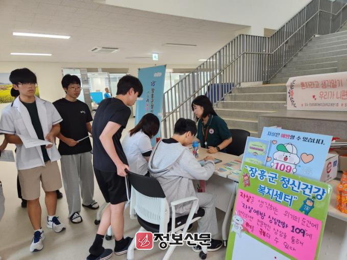 9일부터 관산·장흥읍 행정복지센터 및 전남미래자동차고등학교에서 홍보 부스를 운영하여 ▲우울증 검사 ▲자살예방 인식도 조사 ▲방향제 만들기 ▲자살예방 퀴즈 이벤트 등을 진행하고 장생이(장흥생명지킴이)지구대원들이 상가 일대를 순회하며 자살예방의 날을 홍보하였다.