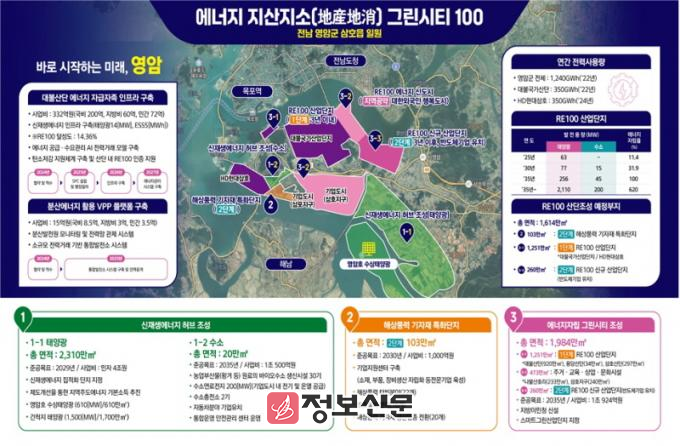영암군은 올해 7월 ‘에너지 지산지소 그린시티 100’ 정책을 발표하고, △신재생에너지 허브-재생에너지 집적화단지 △해상풍력 기자재 특화단지 △에너지자립 그린시티를 조성하는 에너지 대전환 청사진을 밝혔다. 여기에는 재생에너지 집적화단지 발전사업 등으로 얻는 수익금을 영암군민에게 나누는 내용도 담겨있다.