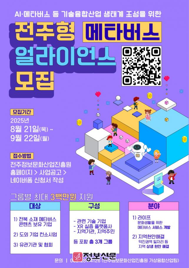 ![]() 전주시, 전주정보문화산업진흥원과 ‘전주형 메타버스 얼라이언스’ 모집 |