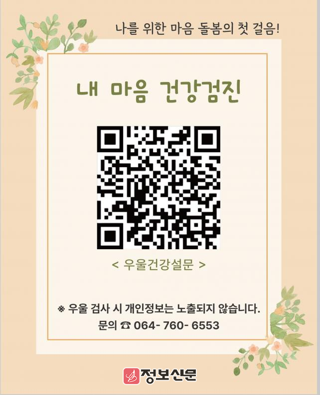![]() 서귀포시, QR코드 활용 정신건강 자가검진 지원사업 운영 |