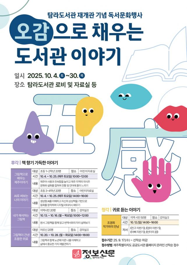 ![]() 탐라도서관, 재개관 기념 오감 채우는 도서관 이야기 개최 |