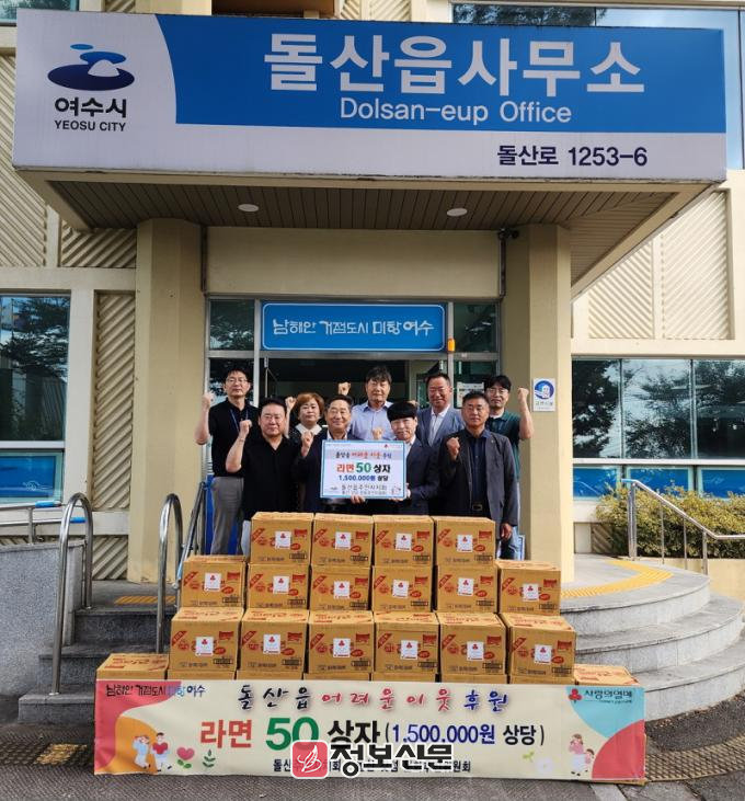 ![]() ▲ 돌산읍 주민자치회와 돌산 갓섬 문화추진위원회(회장 김성문)는 지난 12일 추석 명절을 앞두고 관내 어려운 이웃을 위해 150만 원 상당의 라면 50상자를 돌산읍에 전달했다. |