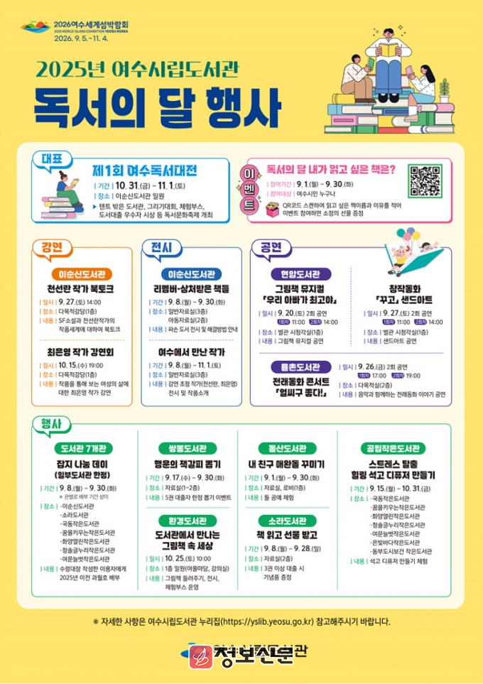 행사 세부 내용과 참여 방법은 여수시립도서관 누리집 공지사항에서 확인할 수 있다.