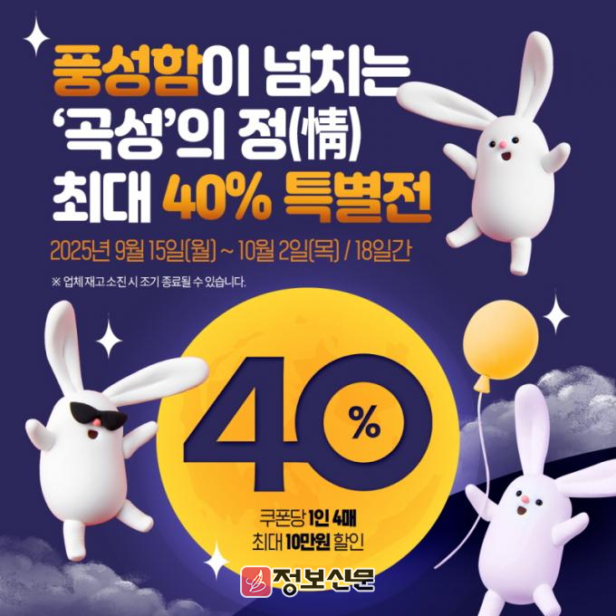 ![]() 곡성몰, 추석 맞이 ‘곡성의 정(情), 최대 40% 특별전’개최 |