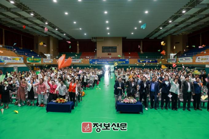 이날 행사에서는 양성평등 문화 확산에 앞장선 유공자와 모범 단체에게 표창을 수여했으며 퍼포먼스로는 존중과 화합의 메시지를 담은 ‘종이비행기 날리기’로 성평등 사회로 향한 군민의 염원을 상징적으로 표현했다.