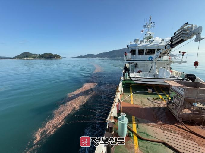 특히 예비 특보 발령 직후, 적조의 확산을 조기에 차단하고 양식장 피해를 최소화하기 위해 정화 운반선 ‘청정 12호’를 긴급 투입했다.