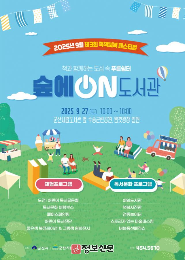 ![]() 군산시, 제3회 책책북북 페스티벌 「숲으로 ON 도서관」 운영 |