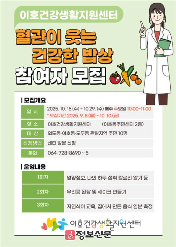 ![]() 제주시 이호건강생활지원센터, 혈관이 웃는 건강한 밥상 운영 |