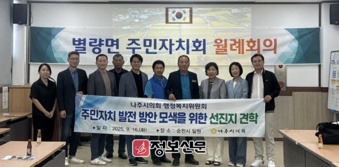 ![]() 나주시의회 행정복지위원회, 순천시 선진지 견학 통해 주민자치 발전 방안 모색 |