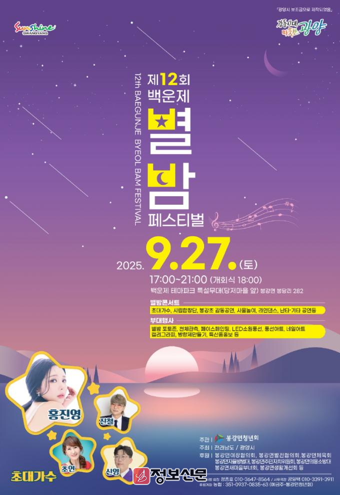 이번 축제는 전라남도와 광양시가 주최하고 봉강면 청년회가 주관하며, 주민과 관광객이 함께 가을 정취와 별빛의 낭만을 만끽할 수 있는 공연과 프로그램으로 꾸며진다.