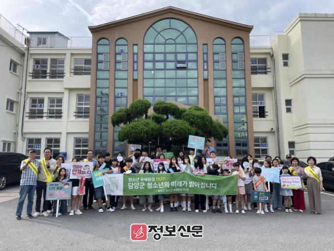 이번 캠페인은 담양군, 담양경찰서, 담양교육지원청, 청소년유해환경감시단, 담양군청소년상담복지센터 등 관계기관과 민간단체가 함께 참여해 담양남초등학교 앞에서 캠페인을 진행했다.