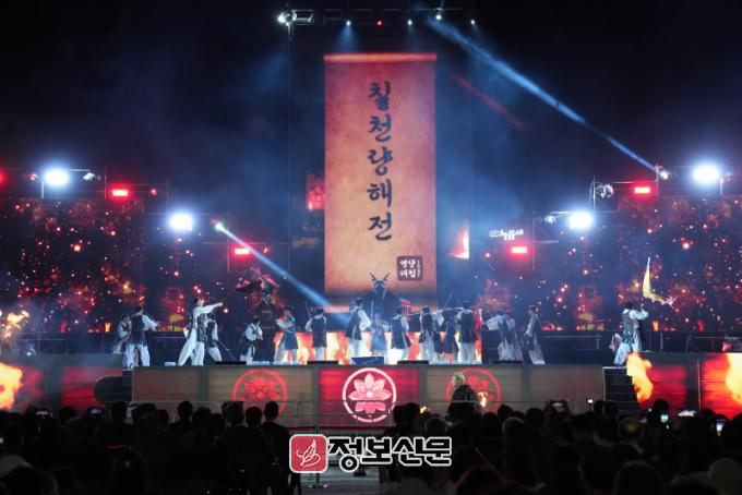 가장 큰 주목을 받은 주제공연은 해전 당시 판옥선을 재현한 초대형 무대와 첨단 디지털 기술, 배우들의 불꽃쇼 등 액션활극으로 관람객들에게 압도적 몰입감을 선사하며 뜨거운 호응을 얻었다. 8개 시군 수군들이 등장해 객석과 함께하는 장면, 장계 낭독, 전 관객이 함께한 한마당 놀이는 승리의 순간을 최고조로 끌어올리며 깊은 감동을 선사했다.