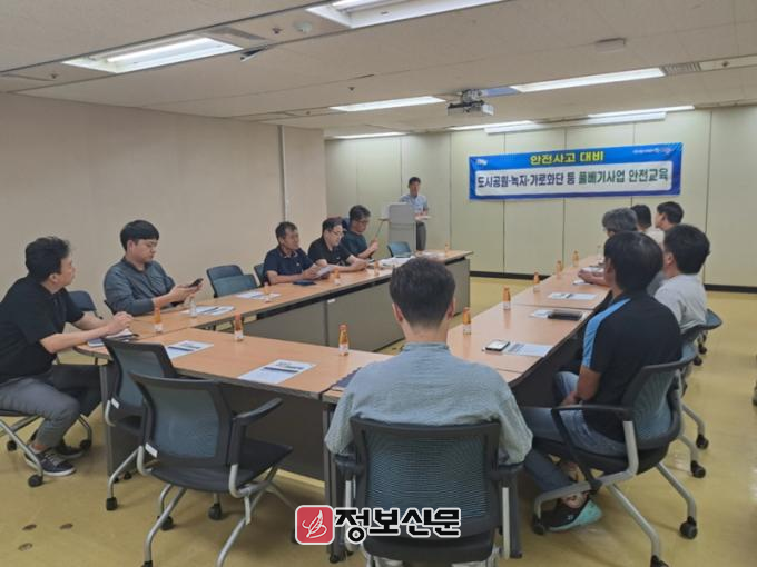 교육에는 유지관리사업에 참여하는 도급업체 22명이 참석했으며, 주요 내용으로는 ▲예초기 등 장비 안전 사용법 ▲보호 장구 착용 및 관리 ▲벌·뱀 등 외부 위험 요인 대처법 ▲응급상황 초기 대응 절차 등이 다뤄졌다.
