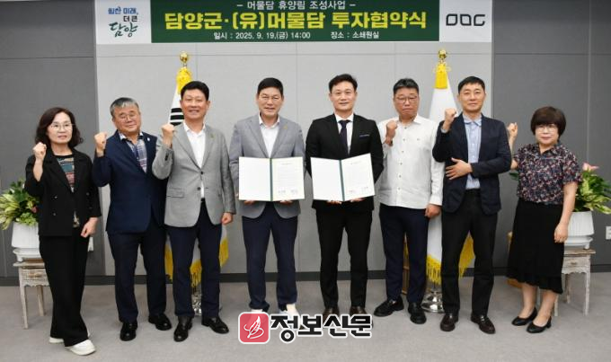 협약에 따라 담양군은 머물담 휴양림 조성사업이 원활히 추진될 수 있도록 행정적 지원에 최선을 다하고, (유)머물담은 800억 원 규모의 투자계획과 함께 지역 인재 채용, 지역 생산품 구매 등을 통해 지역경제 활성화에 이바지할 방침이다.