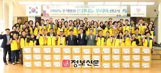 전주시복지재단(이사장 윤방섭)은 22일 전주시자원봉사센터에서 우범기 전주시장과 한명규 전북사회복지공동모금회 회장, 전주시 동 지역사회보장협의체(회장 전석진) 위원 등 80여 명이 참석한 가운데 ‘2025 추석명절 온정나눔 꾸러미’ 행사를 가졌다.