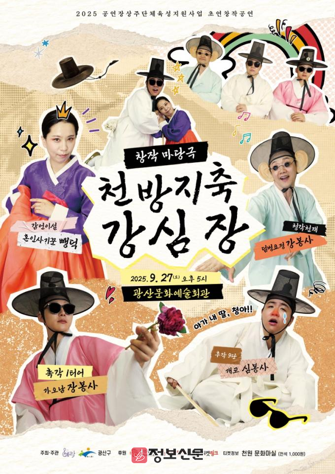 이번 공연은 광산문화예술회관 상주단체 예락과 공동주관으로 진행하며 친숙한 심청전을 새롭게 각색해 연극·무용·기악·판소리가 어우러진 가·무·악의 종합 창작마당극이다.