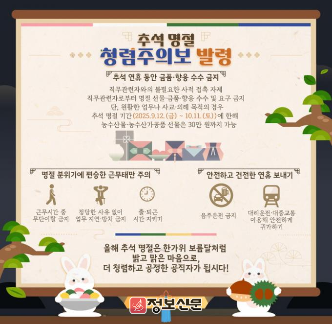 설 명절, 인사철, 하계휴가철에 이어 올해 4호 청렴주의보다.