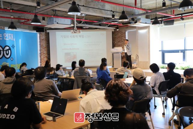 제주더큰내일센터(센터장 이승우, 이하 센터)는 이달 22일 탐나는인재 11기 공통교육과정의 일환으로 센터 3층 라운지에서 ‘사회적 가치와 기업의 역할’을 주제로 특별강연을 개최했다.