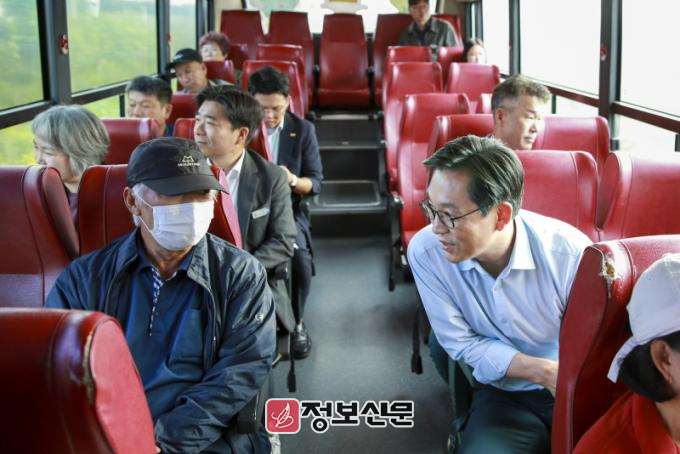 영암공영버스터미널에서 출발해 삼호종합버스터미널까지 약 45분간 우승희 영암군수는, 버스 탑승객들과 교통 불편 상황을 포함해 다양한 이야기를 나누며 소통하고, 꾸준한 교통서비스 개선 등을 약속했다.