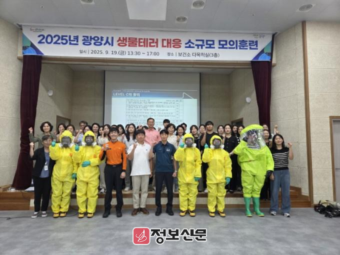 이번 훈련에는 전남도청, 광양경찰서, 전남보건환경연구원, 광양교육지원청 등 유관기관과 타 지자체 생물테러 담당자 등 50여 명이 참여했다. 훈련은 ▲생물테러 대응 체계 이론 교육 ▲Level A·C 보호복 착·탈의 실습 ▲독소 다중탐지키트 사용법 ▲검체 이송 교육 등 실행 중심 프로그램으로 진행됐다.