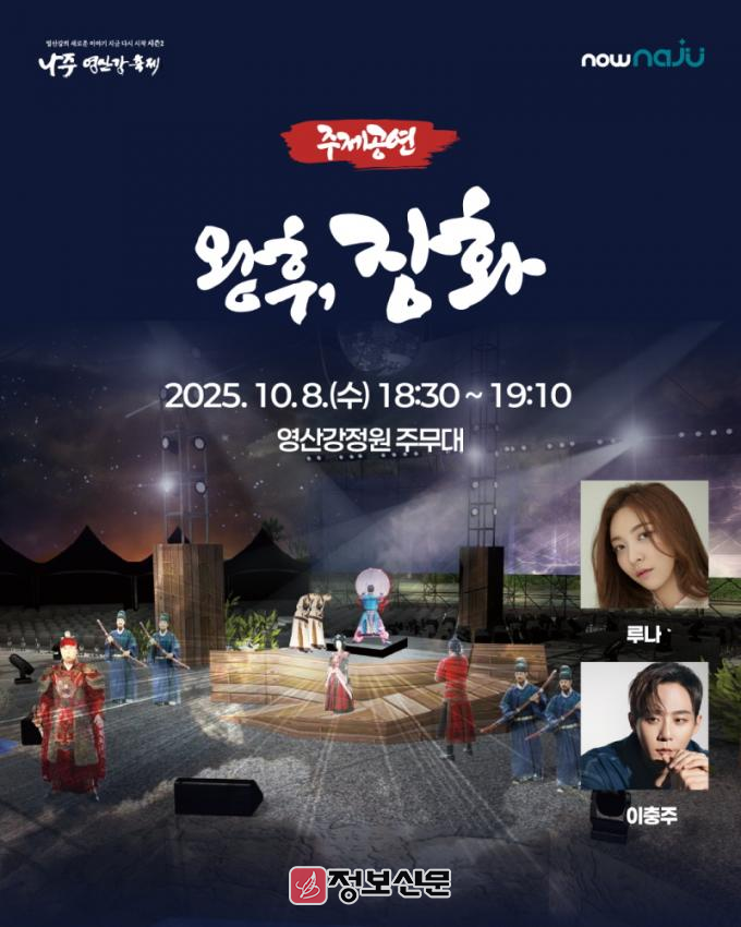 박명성 축제 총감독은 “뮤지컬 ‘왕후, 장화’는 이번 축제의 상징적 무대이자 압도적 킬러 콘텐츠로 나주와 영산강의 역사와 문화를 생생히 되살리는 작품”이라며 “관객들이 나주의 깊은 이야기와 감동을 무대를 통해 체험하게 될 것”이라고 말했다.