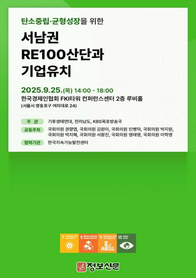 ![]() 전라남도, 서남권 RE100산단·기업 유치 토론회 개최 |