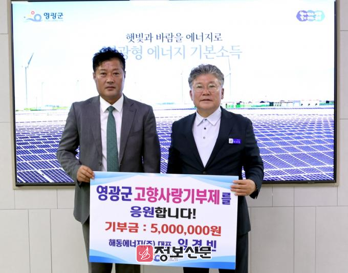 ![]() 해동에너지(주) 임경빈 대표, 영광군 고향사랑기부금 500만 원 기탁 |