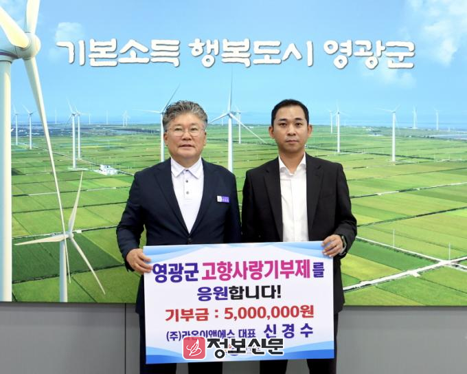 ![]() ㈜라온이앤에스 신경수 대표, 고향사랑기부금 500만 원 기탁 |