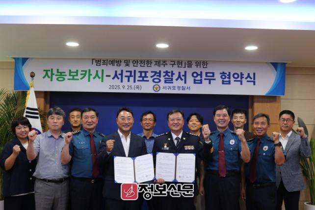 [정보신문 = 김금덕 기자] 서귀포경찰서(서장 김용태) 에서는 '25. 9. 25.(목) 서귀포경찰서와 자농보카시 간 업무협약을 체결하고 도민의 안전과 범죄피해예방 홍보에 적극 협력하기로 하였다.