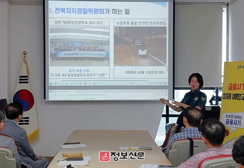 ![]() 전북자치경찰위원회, 어르신 대상 안전.보이스피싱 찾아가는 맞춤형 교육 |