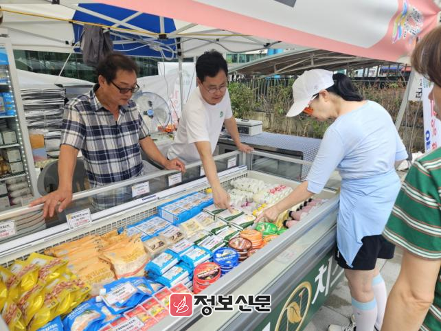 임실엔치즈클러스터, 임실 축협 및 지역 농가 15개 업체가 참여해 치즈와 유제품, 육류, 전통 장류, 한과 등 100여 품목을 시중 가격보다 10~20% 저렴한 가격에 선보인다.