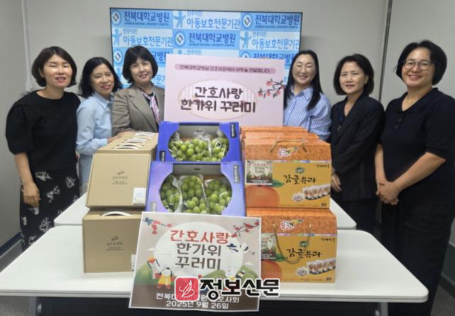 전주덕진아동보호전문기관 최은희 관장은 “민족 대명절 한가위를 앞두고 아동들에게 따뜻한 마음을 전달해주신 전북대학교병원 간호사회에 깊이 감사드린다”며, “이러한 관심과 후원이 아동들에게 큰 힘이 되며, 기관 역시 아동의 권익 보호와 복지 향상을 위해 더욱 힘쓰겠다”고 밝혔다.