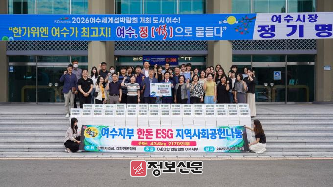 이날 전달식은 시청 현관에서 열렸으며, 정기명 여수시장과 서학수 지부장을 비롯해 협회 회원, 사회복지시설 관계자 등 30여 명이 함께했다.