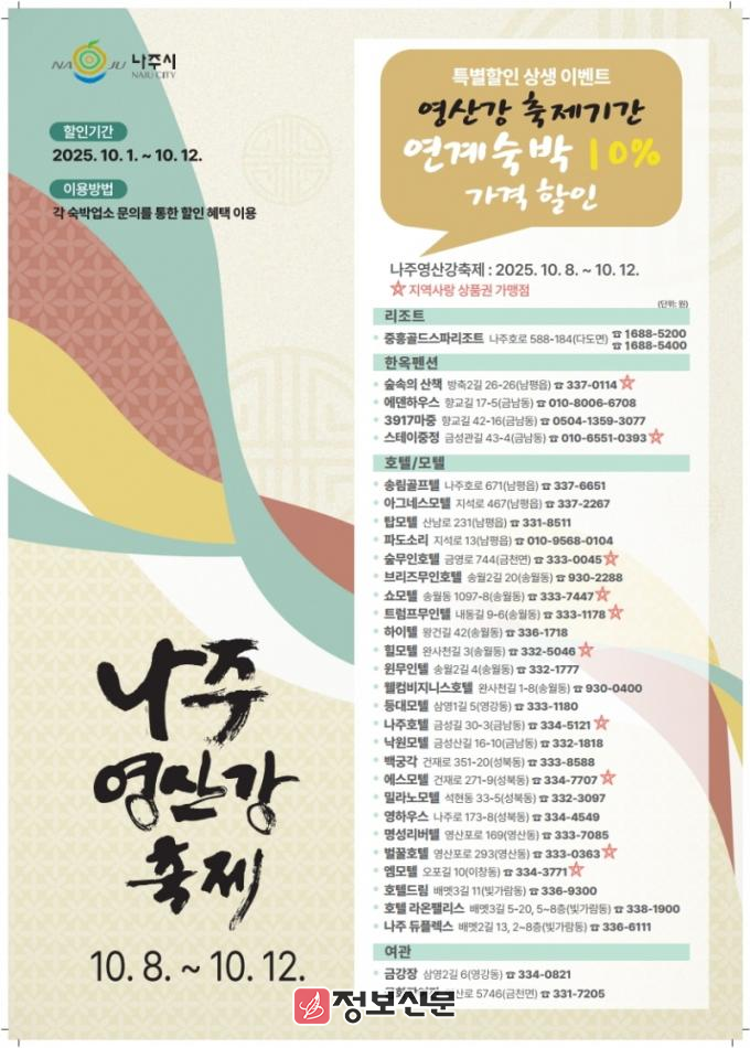 ![]() 나주시, 2025 나주영산강축제 숙박 특별할인 상생 이벤트 추진 |