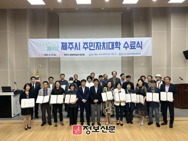 현원돈 제주시 부시장은 “이번 교육과정을 통해 습득한 지식과 경험이 지역사회 발전에 적극적으로 활용되길 바란다”며, “특히, 제주형 주민자치회 출범 등 주민자치의 새로운 방향을 모색하고 있는 시기에 여러분의 활동이 풀뿌리 민주주의 정착과 주민 주도 자치문화 확산에 큰 힘이 될 것이라 기대한다”고 전했다.